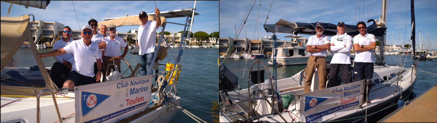 Le 29 septembre, deux croiseurs du CNMT, Pen Kalet et Pantoufle, étaient présents à Port Camargue pour le départ de la MED-MAX. Chaque équipage comprenait des blessés de la Défense membres de la team Phare40, pour qui ce déplacement était l’occasion d’une première navigation au large, un nouveau défi à relever.