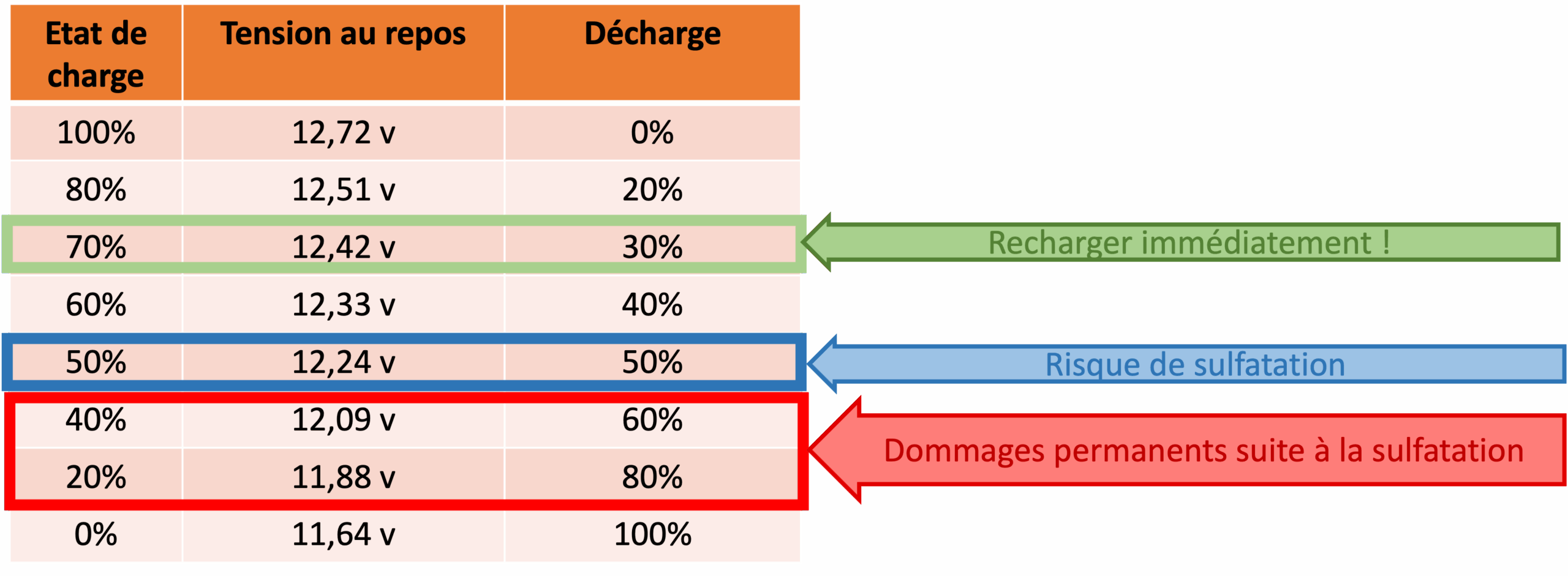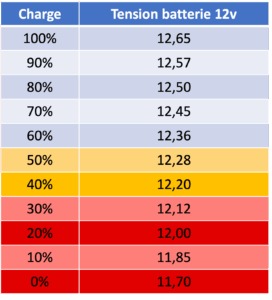 Le tableau ci contre donne les niveaux de charge d’une batterie au plomb, valeurs de tensions au repos