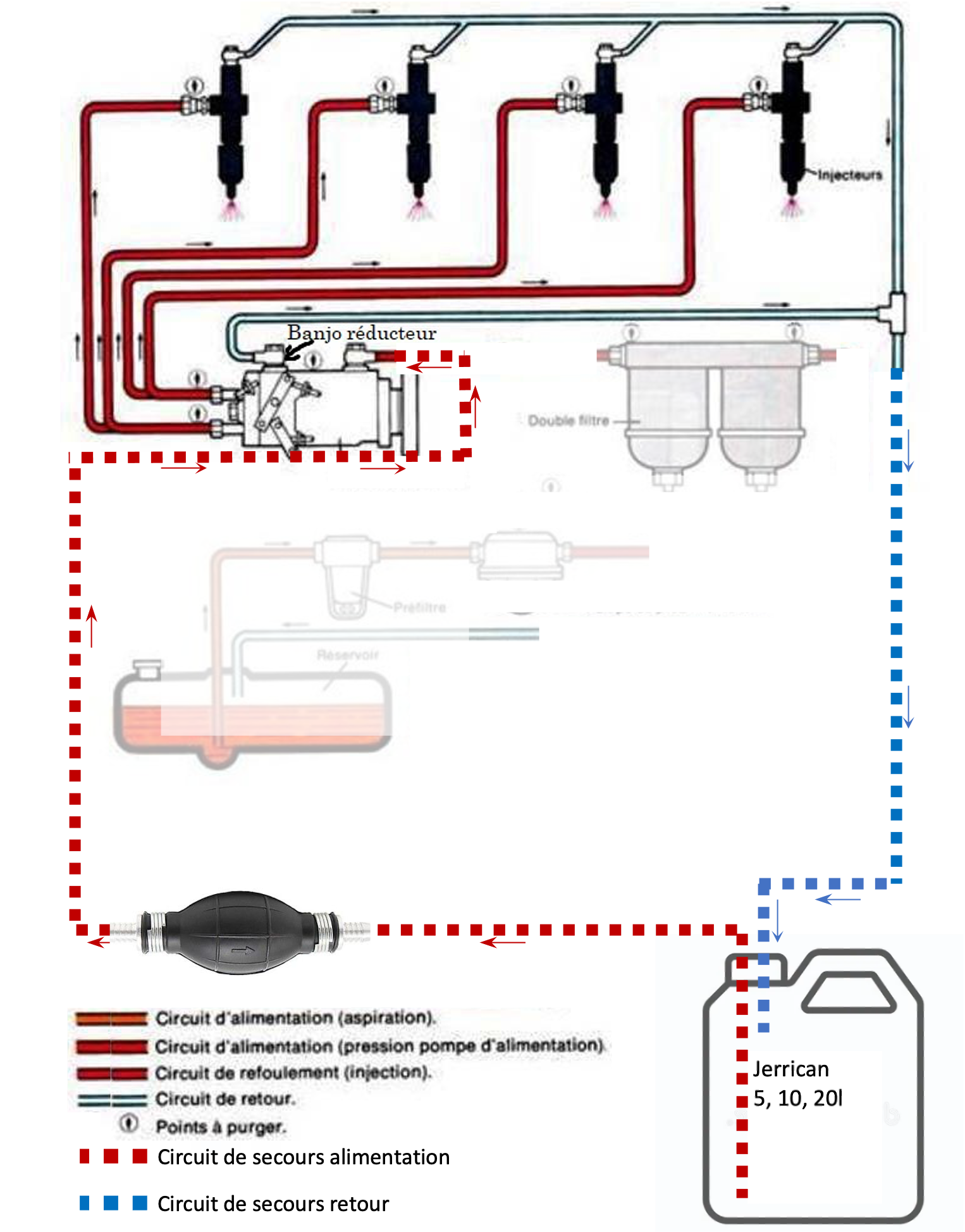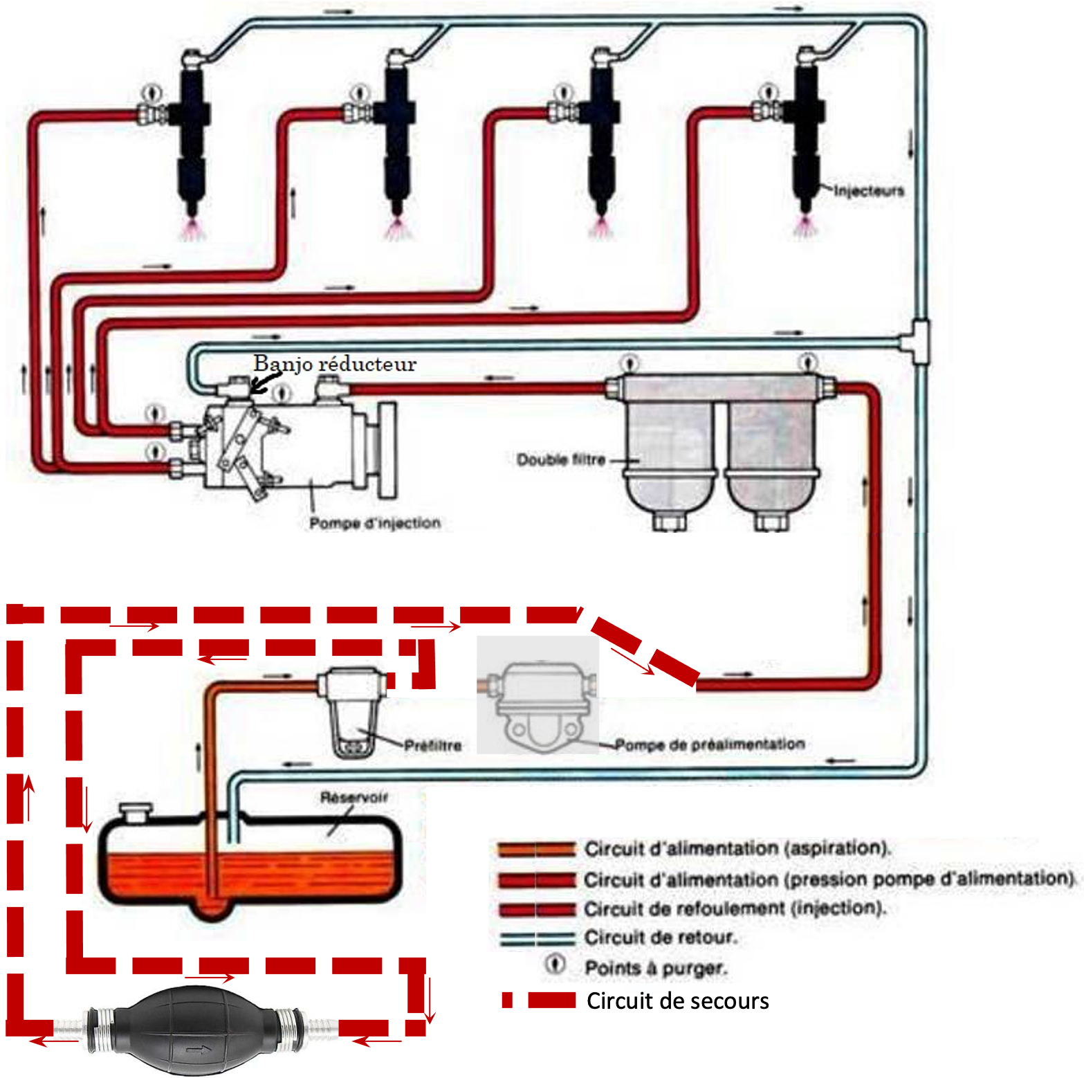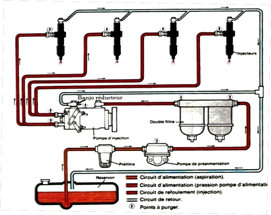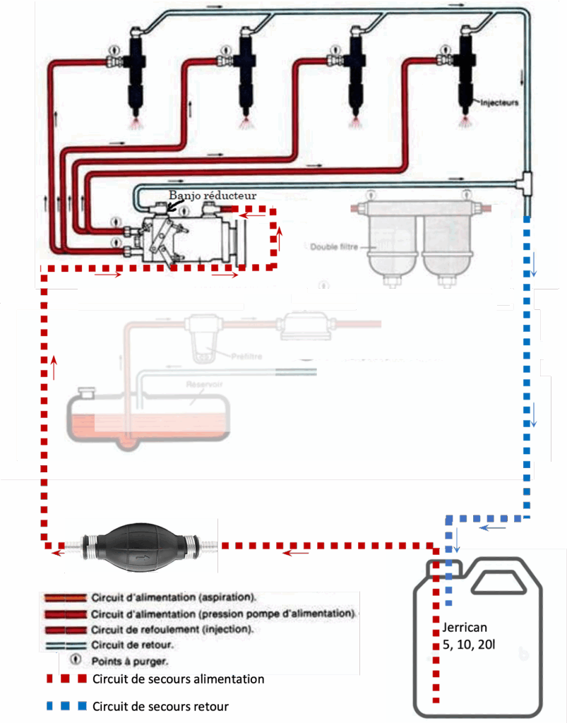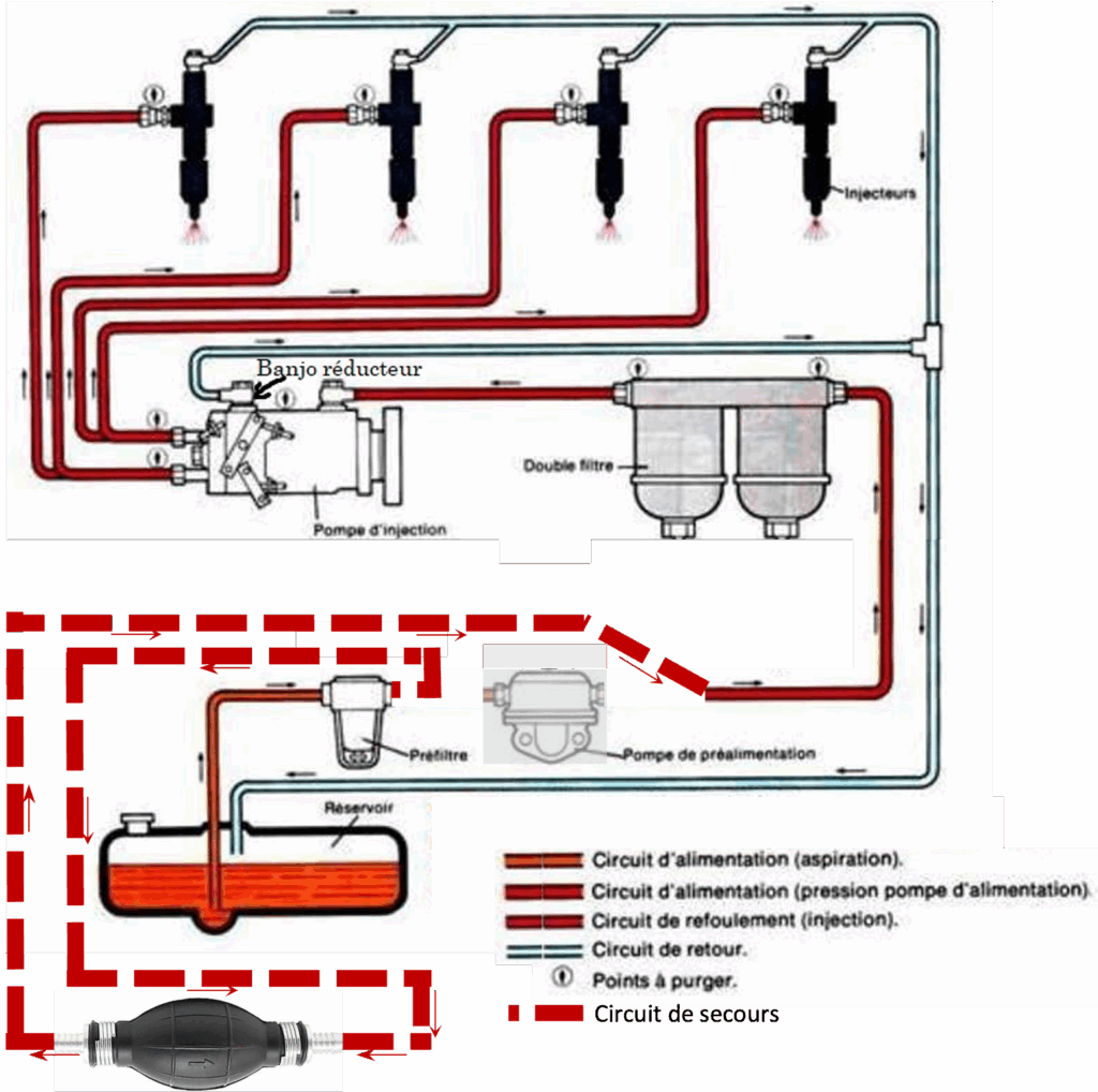 Circuit de gazole avec bactéries ayant obstrué tous les filtres et la pompe d’amorçage.