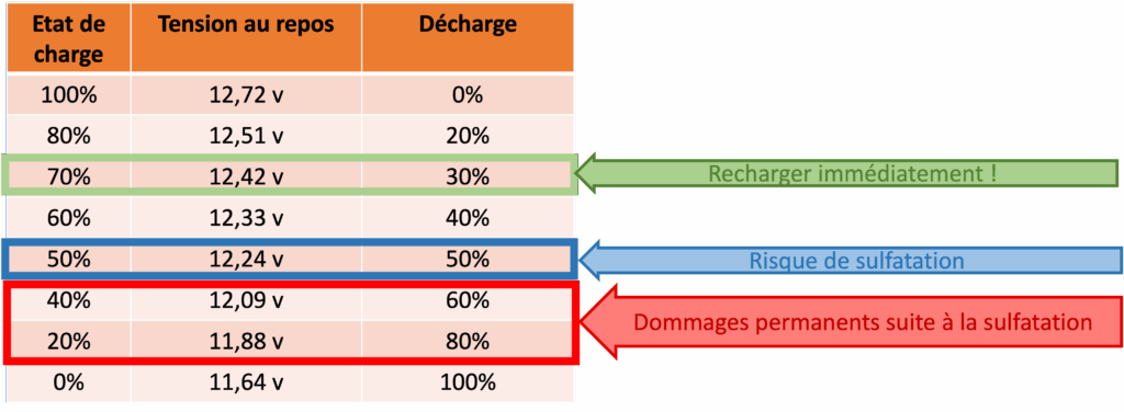Il est préférable d’avoir des batteries de servitude d’une capacité suffisante qui, elles, supporteront les décharges profondes, un fonctionnement H24 et des démarrages, plutôt qu’une batterie de traction (démarrage), qui ne supportera pas ces actions.