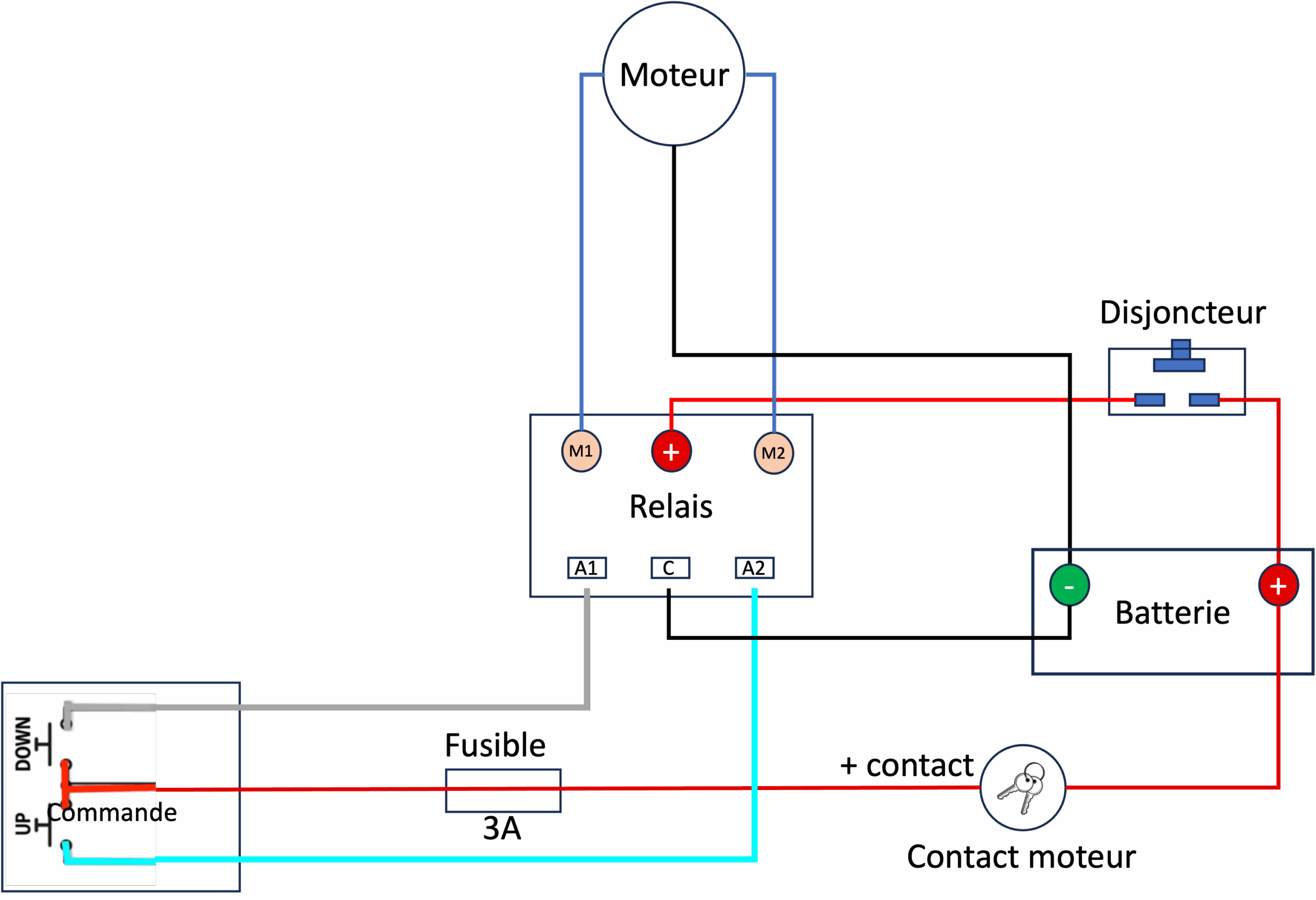 Vérifier l’état des connexions entre le guindeau, le relais, la commande et les câbles d’alimentation.
